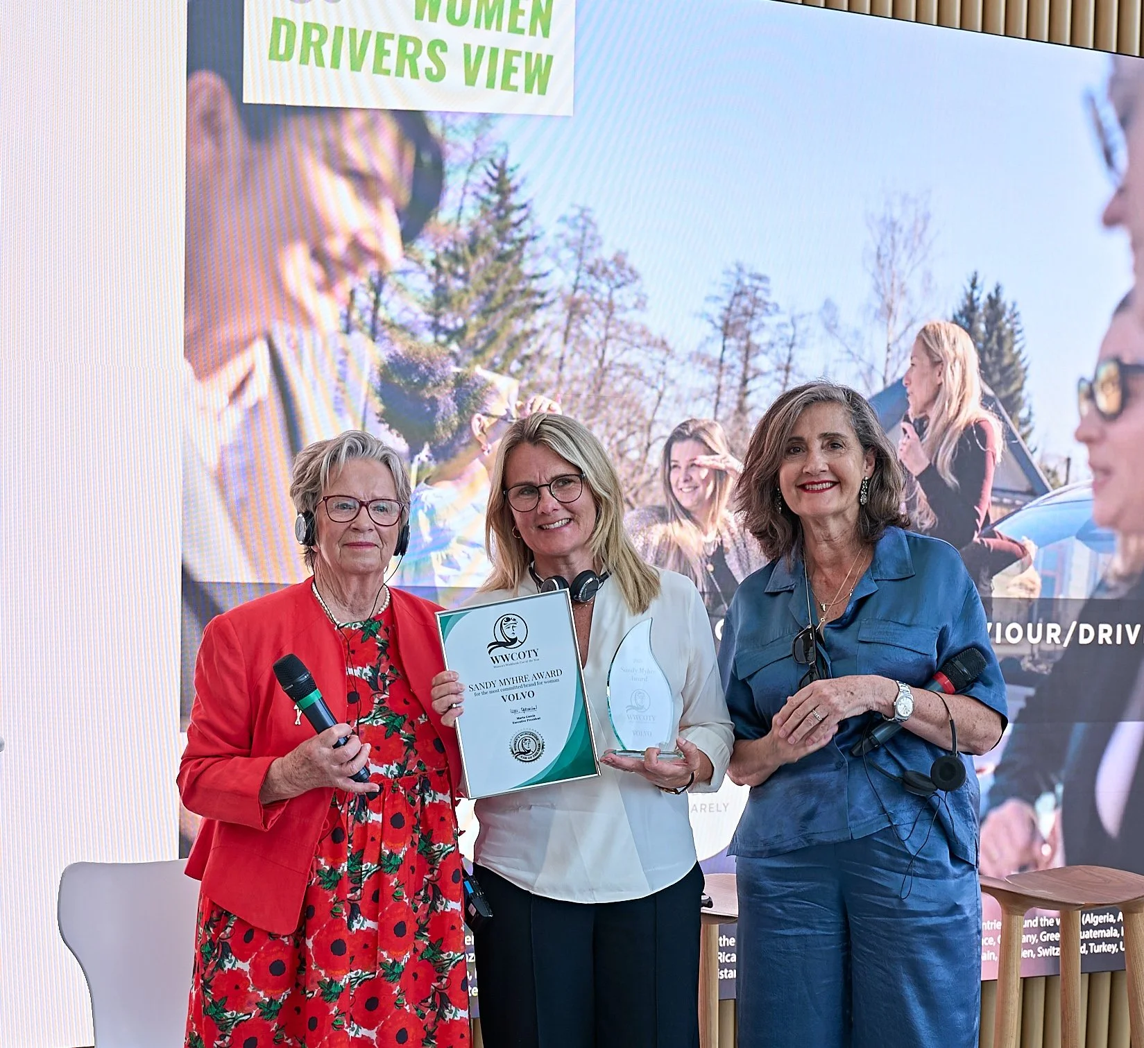 The award was for the Most Female-Friendly Car Company. It is called the Sandy Myhre Award (in honour of the Myhre who started WWCOTY), and she was there to present the trophy to Lotta Jakobson from Volvo.