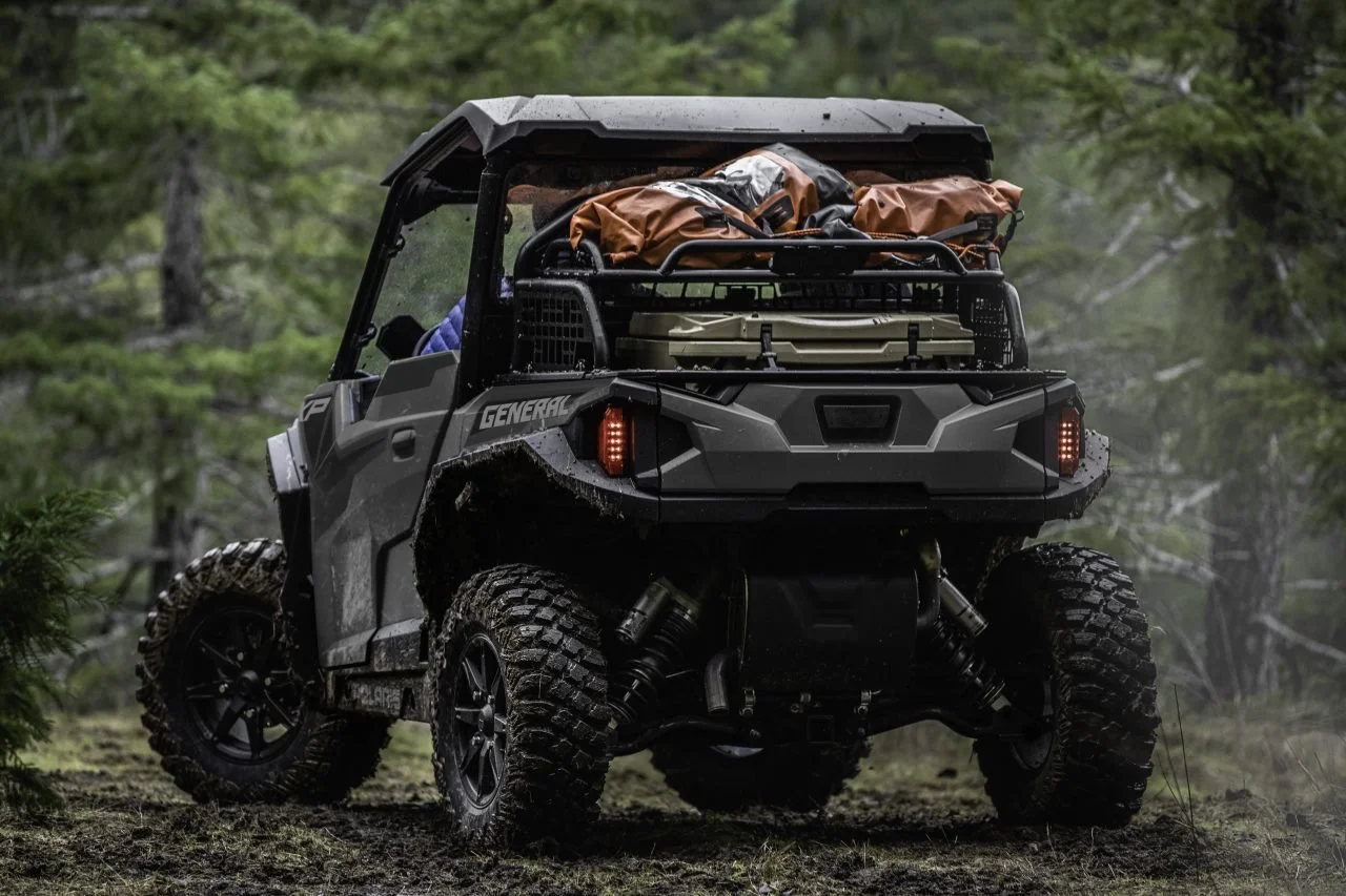 They will be driving the Polaris General 1000 Deluxe ABS. They will be equipped with a Campwerk iKamper top tent, a Taubenreuther special design Multi-Rack storage solution, XOBI outdoor kitchen, Pro Armor light bar, and beadlock wheels, Polaris Engineered rock sliders, front hood storage, in addition to the purpose-built features straight from the factory.